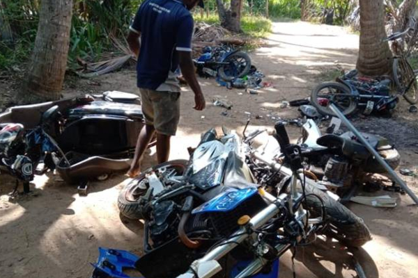கைவிடப்பட்ட மோட்டார் சைக்கிள்கள் அடித்து நொருக்கப்பட்டுள்ளது. சம்பவம் தொடர்பாக கிளிநொச்சி பொலிசார் விசாரணைகளை மேற்கொண்டுள்ளனர்.